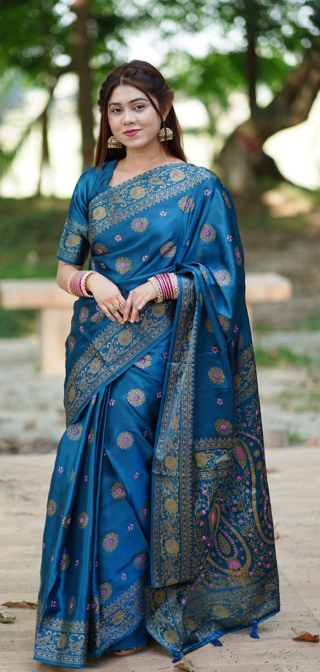 – প্রিমিয়াম কোয়ালিটি জরি সিল্ক কাতান।